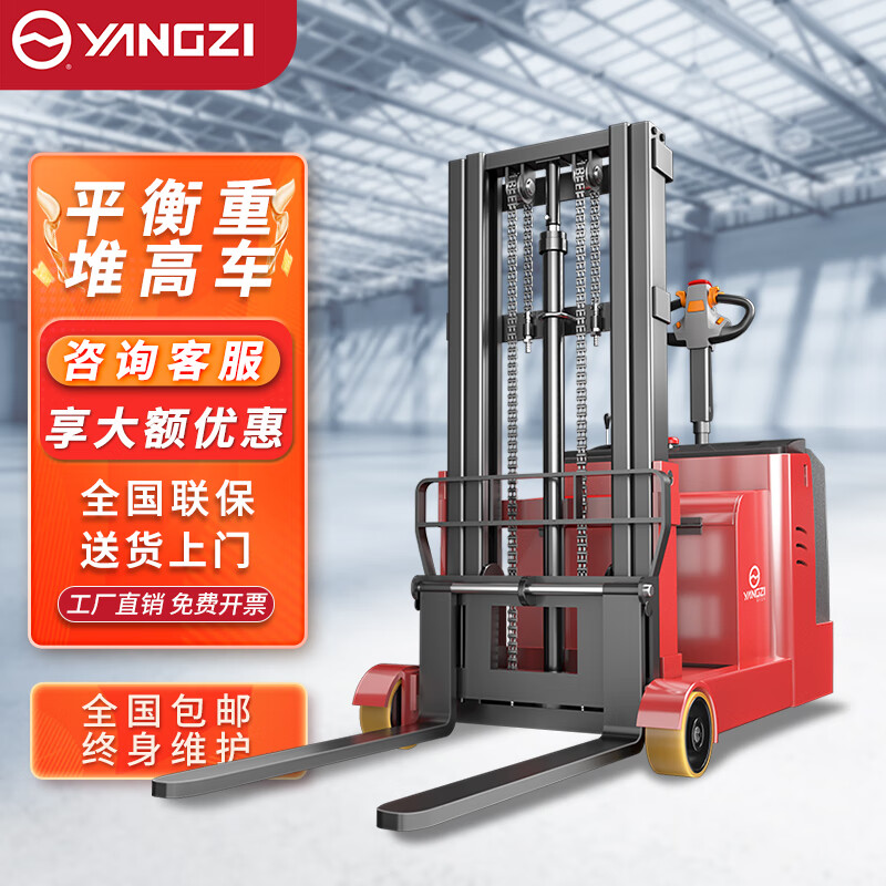 揚(yáng)子全電動(dòng)平衡重式堆高車CPD,荷載更大起升平穩(wěn),加厚C型鋼門架/可調(diào)節(jié)貨叉/加粗鏈條